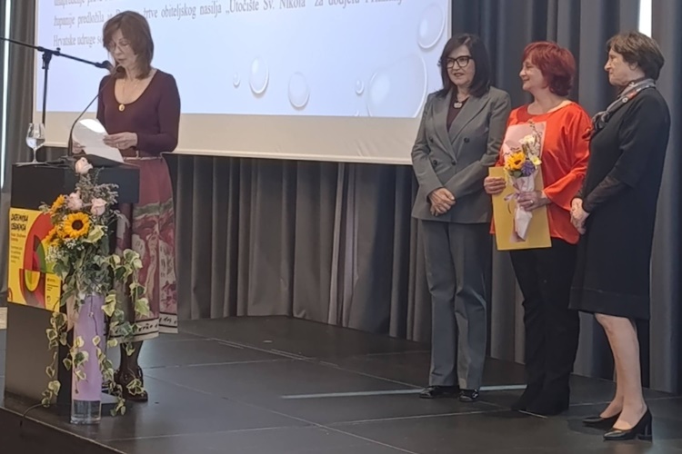 Priznanje za zapažene uspjehe u radu, zalaganje za opće dobro i solidarnost u zajednici dodijeljeno je i Domu za žrtve obiteljskog nasilja „Utočište Sveti Nikola“ Varaždin, a u ime ustanove nagradu je preuzela ravnateljica Irena Mađarić.