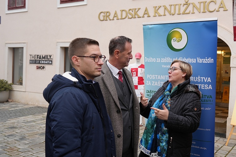 - Svjetski podaci govore sami za sebe – gotovo 600 milijuna ljudi živi s dijabetesom, a procjene kažu da će taj broj do 2050. narasti na 853 milijuna. Svake godine u svijetu 3,4 milijuna osoba izgubi život zbog posljedica šećerne bolesti. Hrvatska pritom nije iznimka – u 2024. godini zabilježeno je 396.005 osoba s dijabetesom, a u Varaždinskoj županiji gotovo 15.000 građana nosi se s ovim stanjem. Posebno zabrinjava što je dijabetes i dalje jedan od vodećih uzroka smrtnosti; prošle godine u našoj je županiji od posljedica ove bolesti preminulo 73 osobe. Dijabetes je veliki javnozdravstveni problem – „tihi ubojica“ koji svojim posljedicama narušava ne samo funkcioniranje pojedinca, već i obitelji te čitave zajednice. Zato su ovakve javnozdravstvene akcije iznimno važne. One ne samo da educiraju i podižu svijest, nego spašavaju živote kroz rano otkrivanje bolesti. Drago mi je da je Društvo za zaštitu od dijabetesa Varaždin ponovno okupilo stručnjake, volontere, učenike Medicinske škole Varaždin i Maruševec te studente sestrinstva Sveučilišta Sjever, kako bismo mogli izmjeriti vrijednosti šećera u krvi i krvnog tlaka te razgovarati s građanima o prevenciji i zdravim navikama - rekao je Poljak.