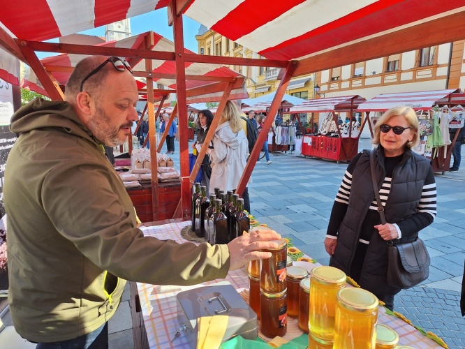 Varaždinski obrtnici su u subotu prijepodne na štandovima prezentirali rad svojih vrijednih ruku – suvenire, personalizirane poklone, ručno rađeni nakit, tekstilne rukotvorine, licitarske proizvode, igračke izrađene od pamučnog konca, mirisne svijeće, domaće čajeve i sokove, voćne likere i rakije, proizvode od pira, heljde, buče, raži i kukuruza, ekološku kozmetiku, ukrase za kosu, proizvode od drva, ručno pletene torbe, umjetničke slike, knjige, kovane proizvode i mnoštvo drugih vrijednih proizvoda koje su obrtnici ponudili po popularnim cijenama.