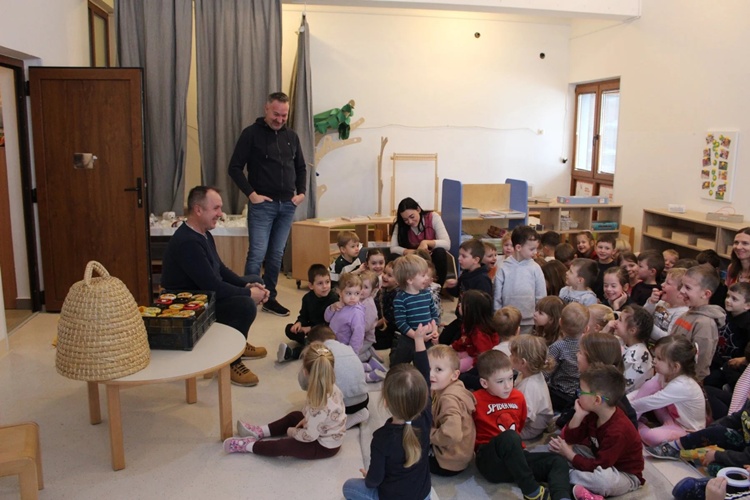 U kratkom druženju djeci je govorio o pčelama, njihovom radu i važnosti za prirodu te im približio kako nastaje med. Djeca su imala priliku vidjeti i dotaknuti pčelarsku opremu poput zaštitnog odijela, košnice i alata koji koriste pčelari u svakodnevnom radu.