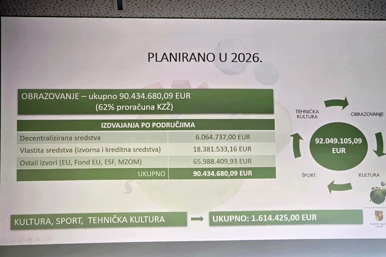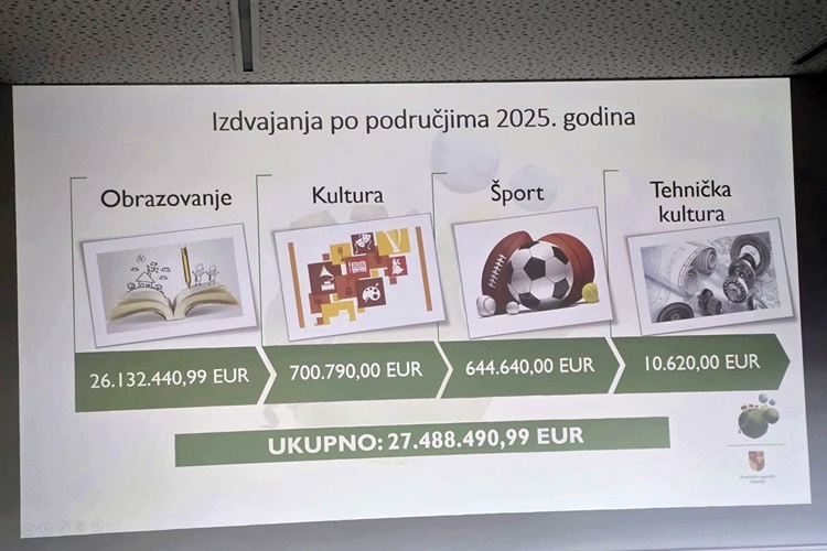 Na predstavljanju je istaknuto kako je upravo obrazovanje jedan od strateških prioriteta Županije, što potvrđuju i financijski pokazatelji – u 2025. godini za taj je resor izdvojeno više od 26 milijuna eura. Usporedno s time, Županija je u 2025. godini za kulturu osigurala 700.790 eura, za šport 644.648 eura, dok je tehnička kultura dobila 10.620 eura.