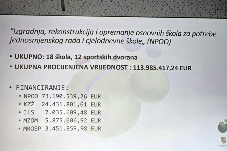 – Radi se o izgradnji, rekonstrukciji i opremanju osnovnih škola za potrebe jednosmjenskog rada i cjelodnevne nastave. Ukupna vrijednost projekata trenutno je oko 114 milijuna eura – kazala je Petek.