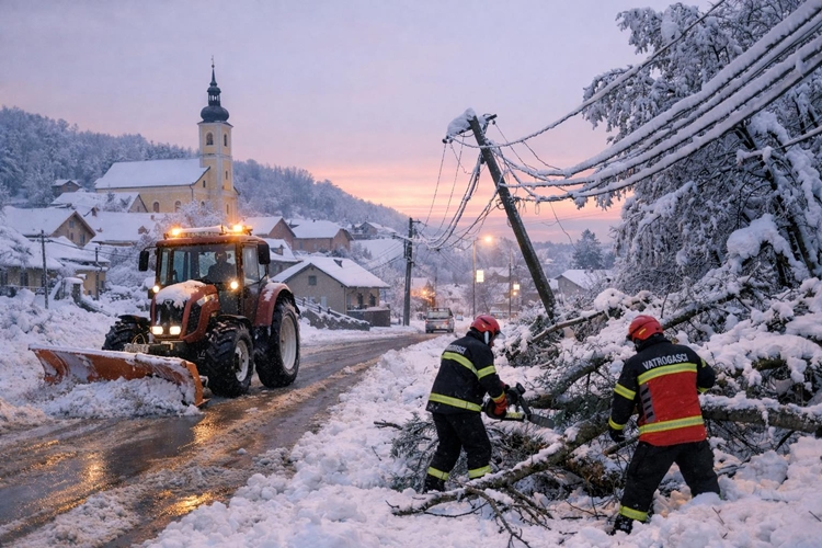 Snježne padaline zahvatile su i područje Klenovnika, gdje je težak i mokar snijeg tijekom noći i jutra prouzročio brojne poteškoće u prometu te izazvao prekide u opskrbi električnom energijom. Dio mjesta jedno je vrijeme bio bez struje zbog oštećenja vodova, a nadležne službe radile su na otklanjanju kvarova.