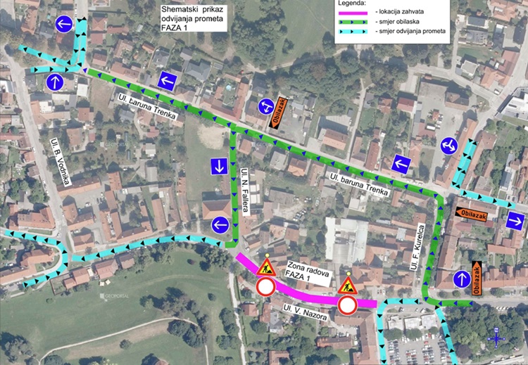 Sa navedenim prometnim elaboratom je suglasna PU varaždinska, Služba za javni red i sigurnost. Predviđeno je da će se promet u Fazi I izvođenja radova, obzirom na zatvaranje za promet dionice od raskrižja Ulice Vladimira Nazora s Trgom Bana Jelačića do raskrižja s Fallerovim prolazom, odvijati obilazno, od Trga Bana Jelačića, kroz Ulicom Frana Kurelca, Trenkovom ulicom I Fallerovim prolazom, do Ulice Vladimira Nazora.
