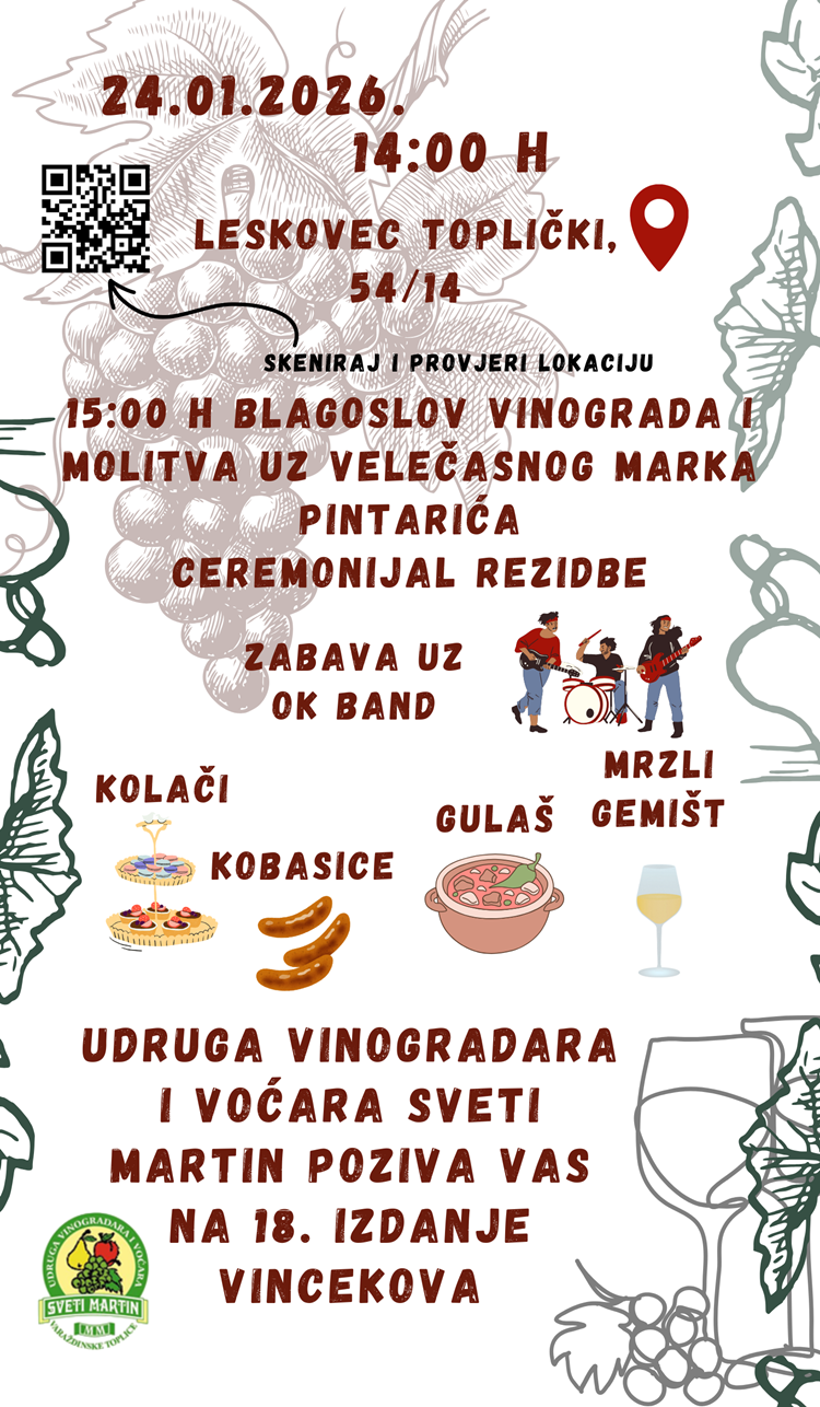 - Vinogradarstvo je važan dio gospodarske i kulturne tradicije topličkog kraja. Manifestacije poput Vincekova čuvaju znanja i običaje koji su se prenosili generacijama te istovremeno potiču promociju lokalnih vinara i njihovih proizvoda. Grad Varaždinske Toplice kontinuirano podupire rad udruga koje svojim aktivnostima doprinose očuvanju ove vrijedne tradicije - poručila je gradonačelnica Ratković.